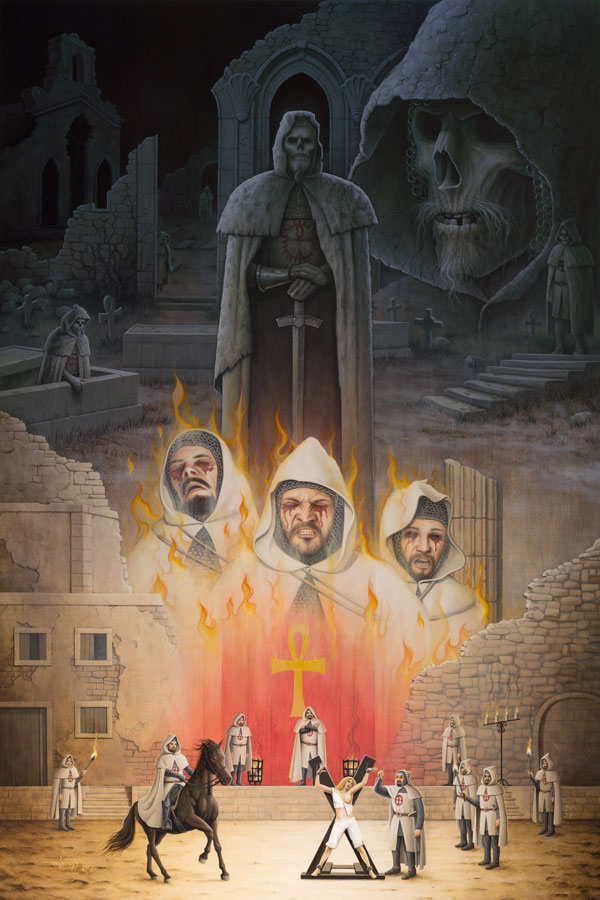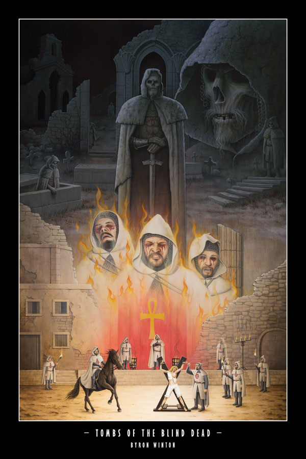 High quality photo print reproduction of the acrylic painting by BYRON WINTON. Inspired by the 70s Spanish Blind Dead horror movie series.