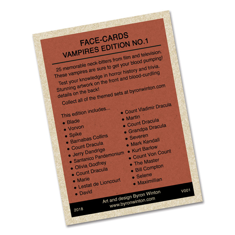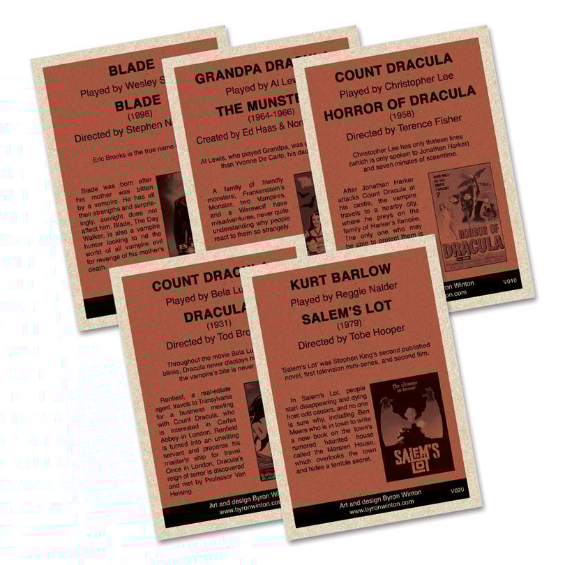 A 25 collector card set featuring the blood suckers of horror films and television. This is Edition No.1.