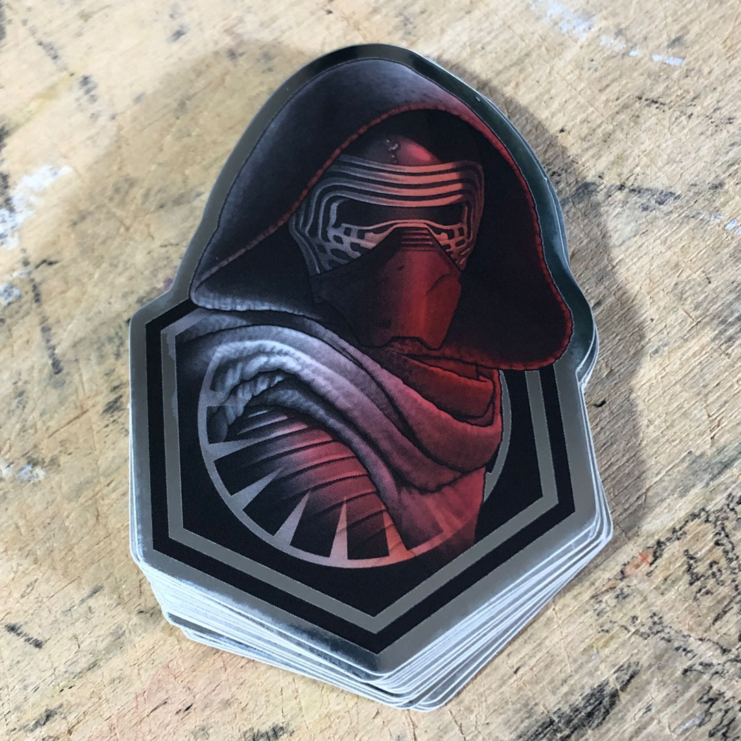 Mirror vinyl sticker of the short tempered Sith Lord from Star Wars: The Force Awakens designed by BYRON WINTON.