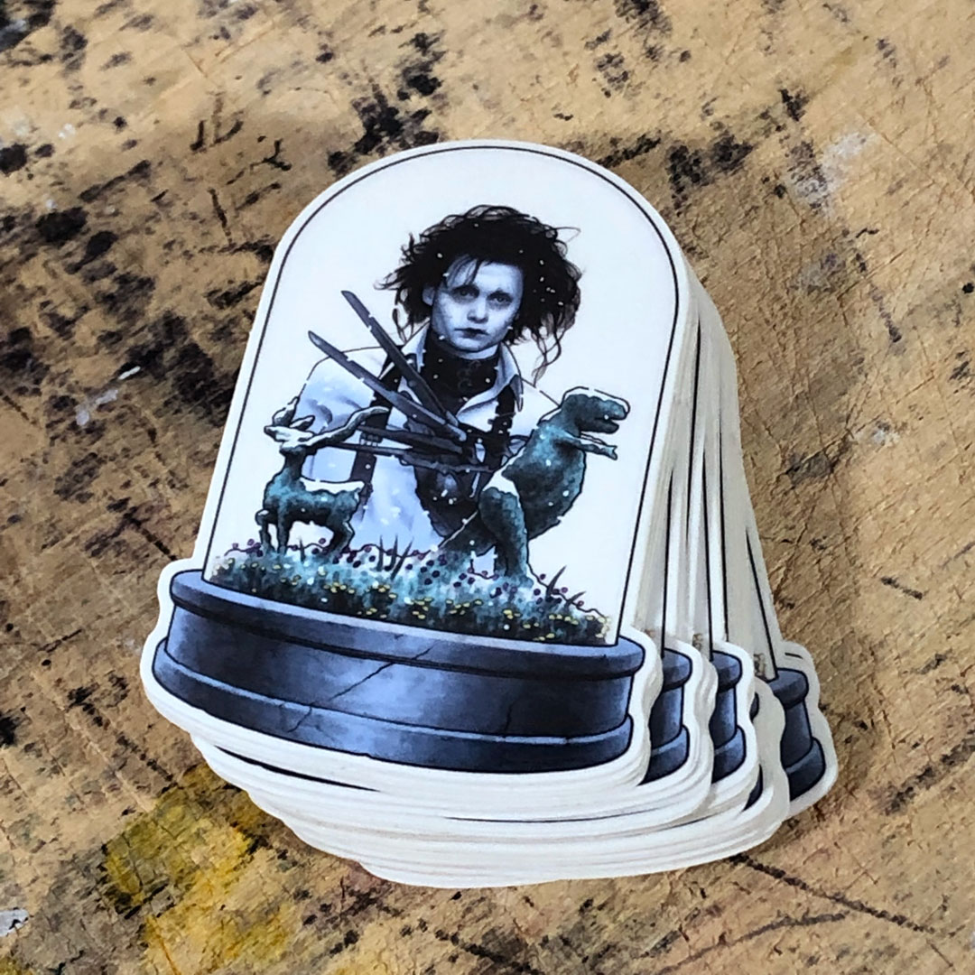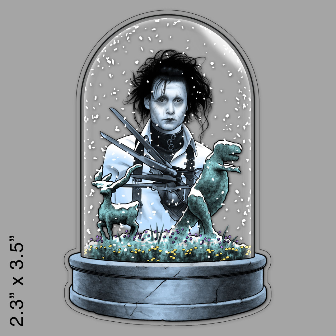 Transparent vinyl sticker of the endearing gothic Edward Scissorhands designed by BYRON WINTON.