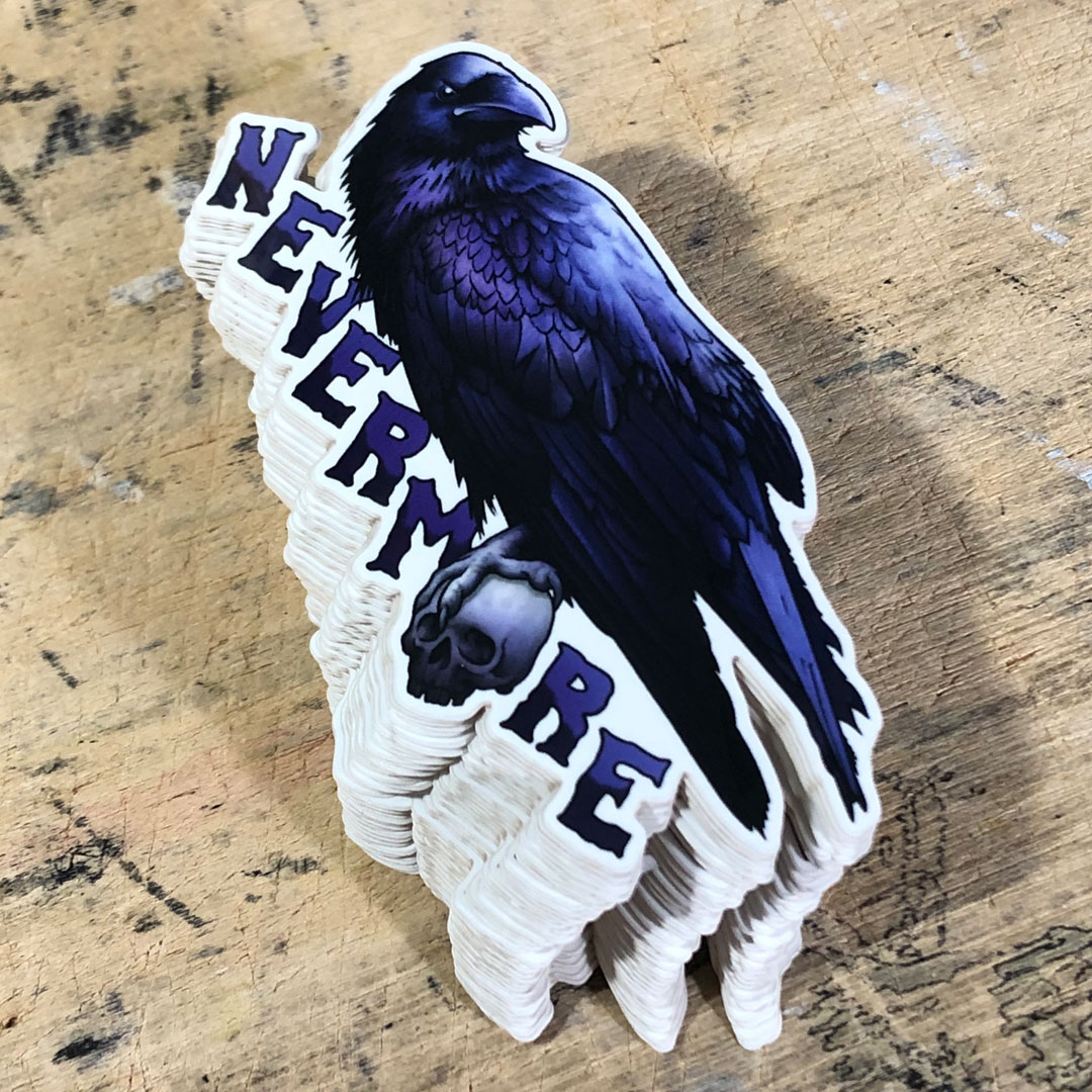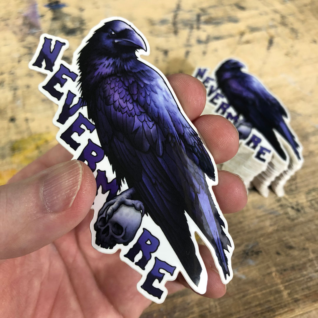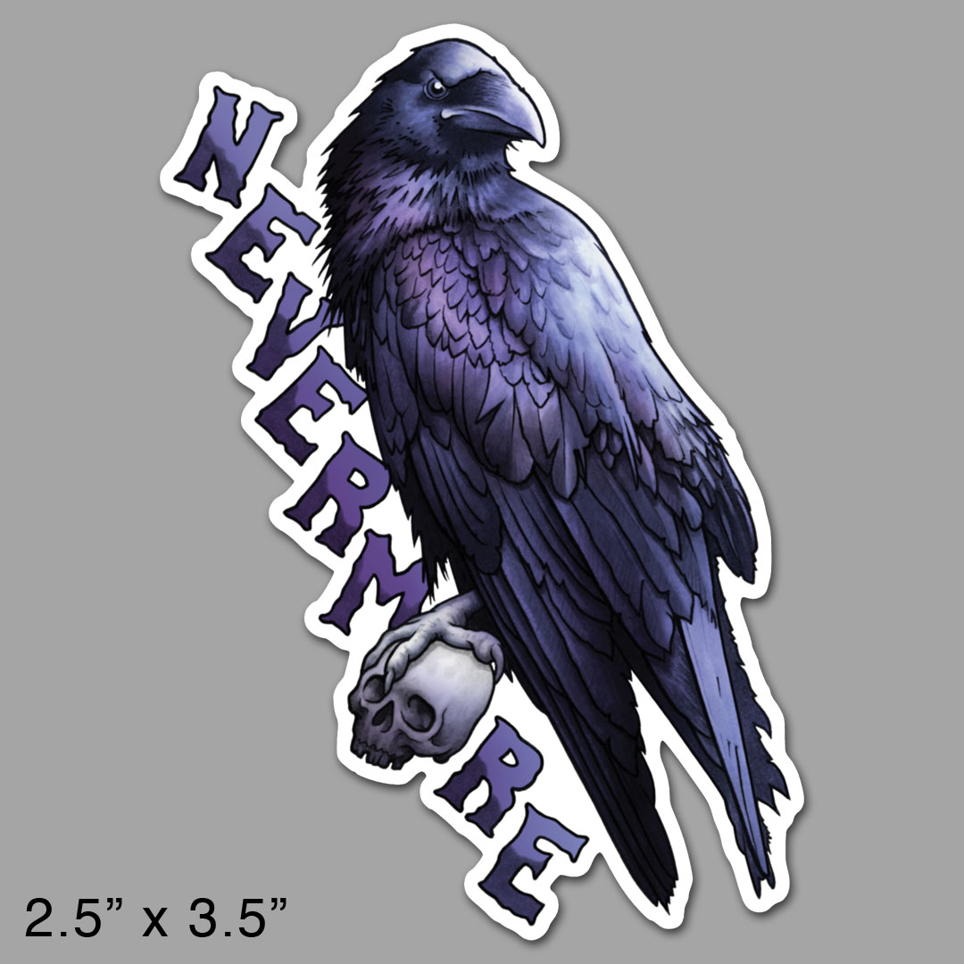 White vinyl sticker of The Raven as written by Edgar Allen Poe designed by BYRON WINTON.