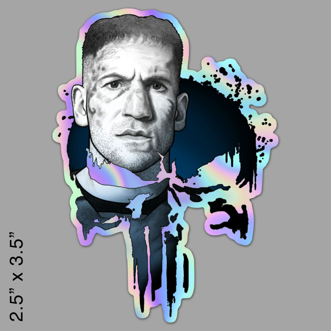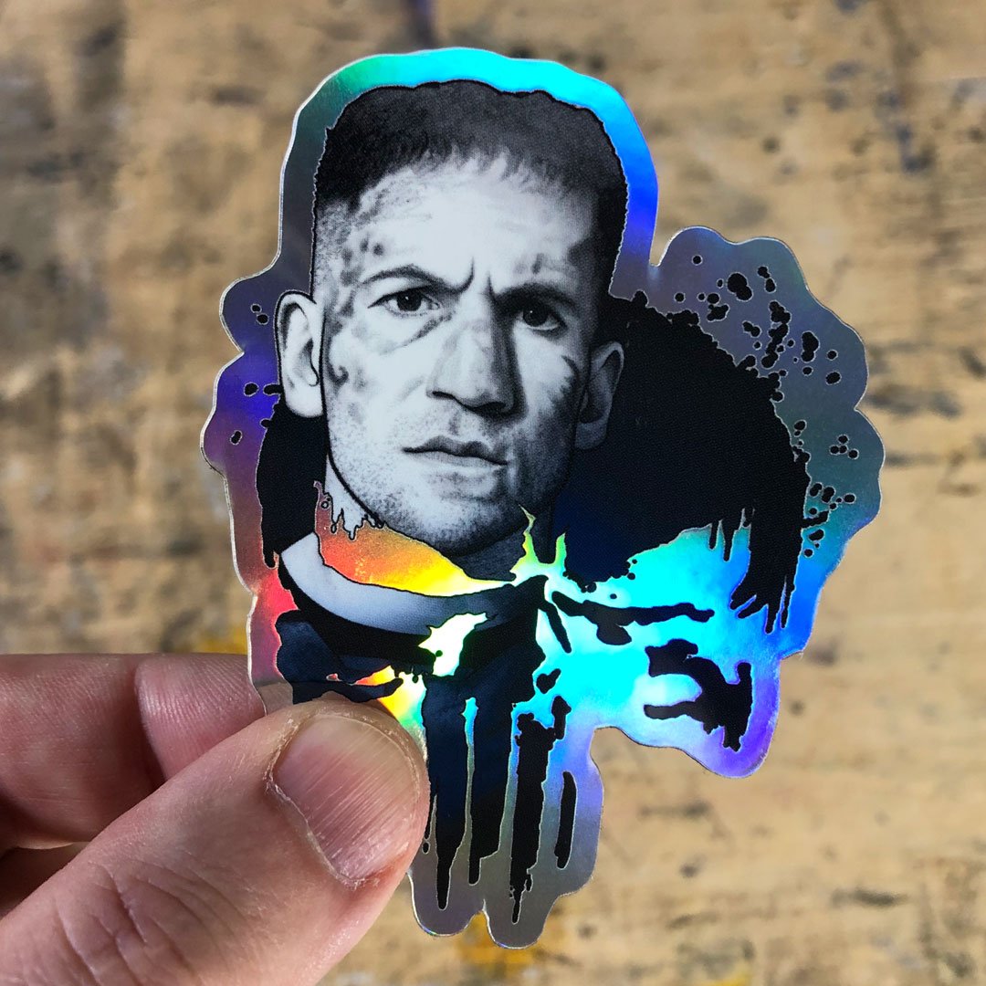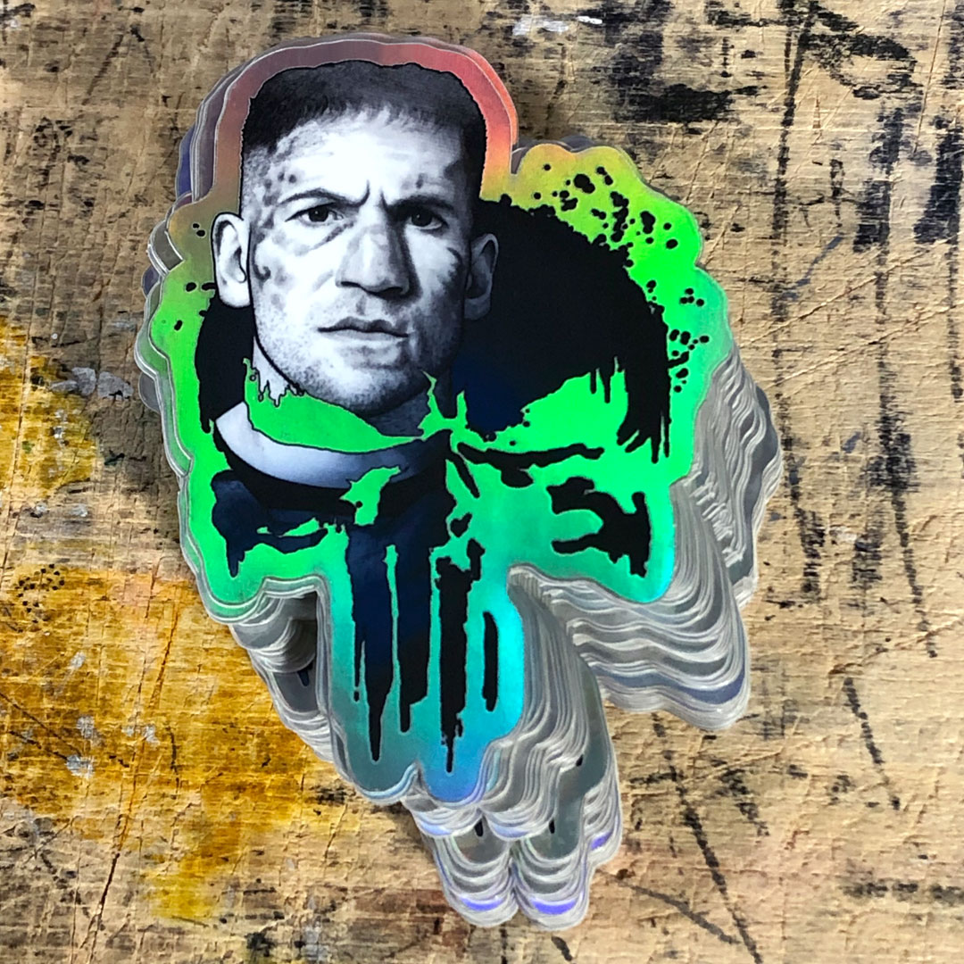 Holographic sticker of the vigilante portrayed by John Bernthal, designed by BYRON WINTON.