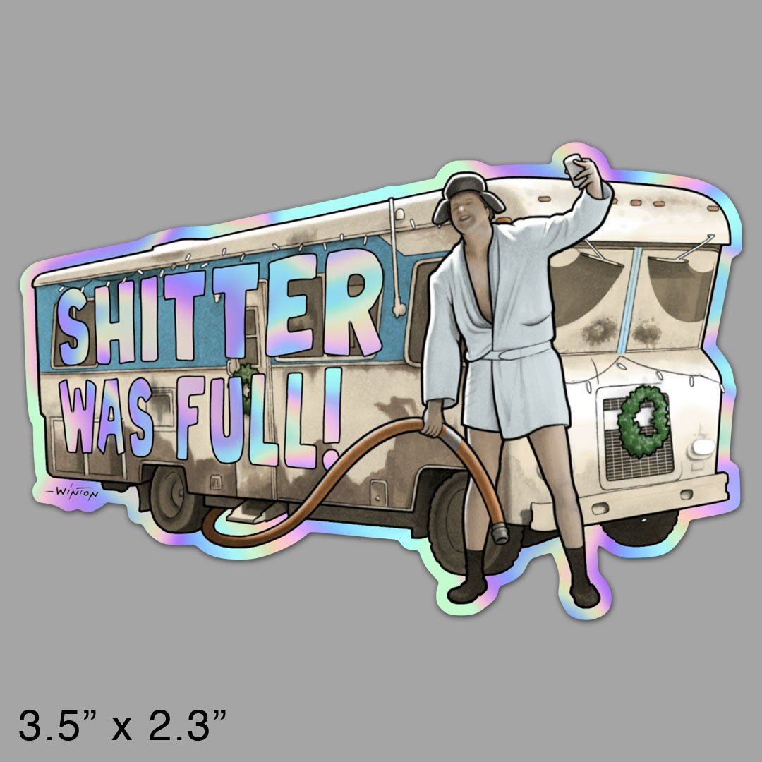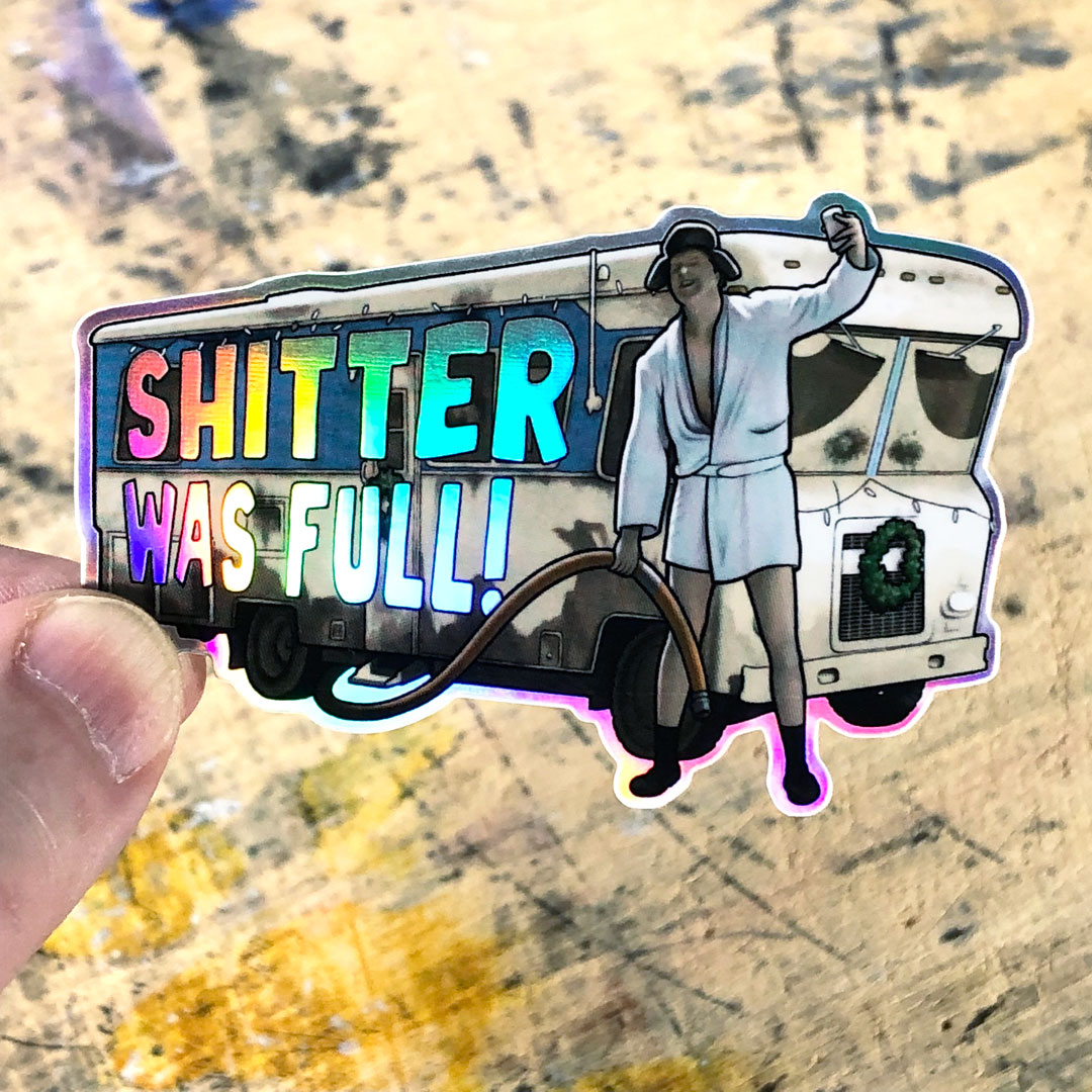 Holographic sticker of the boisterous retort by cousin Eddie from the hilarious holiday film Christmas Vacation, designed by BYRON WINTON.