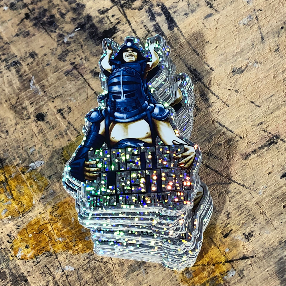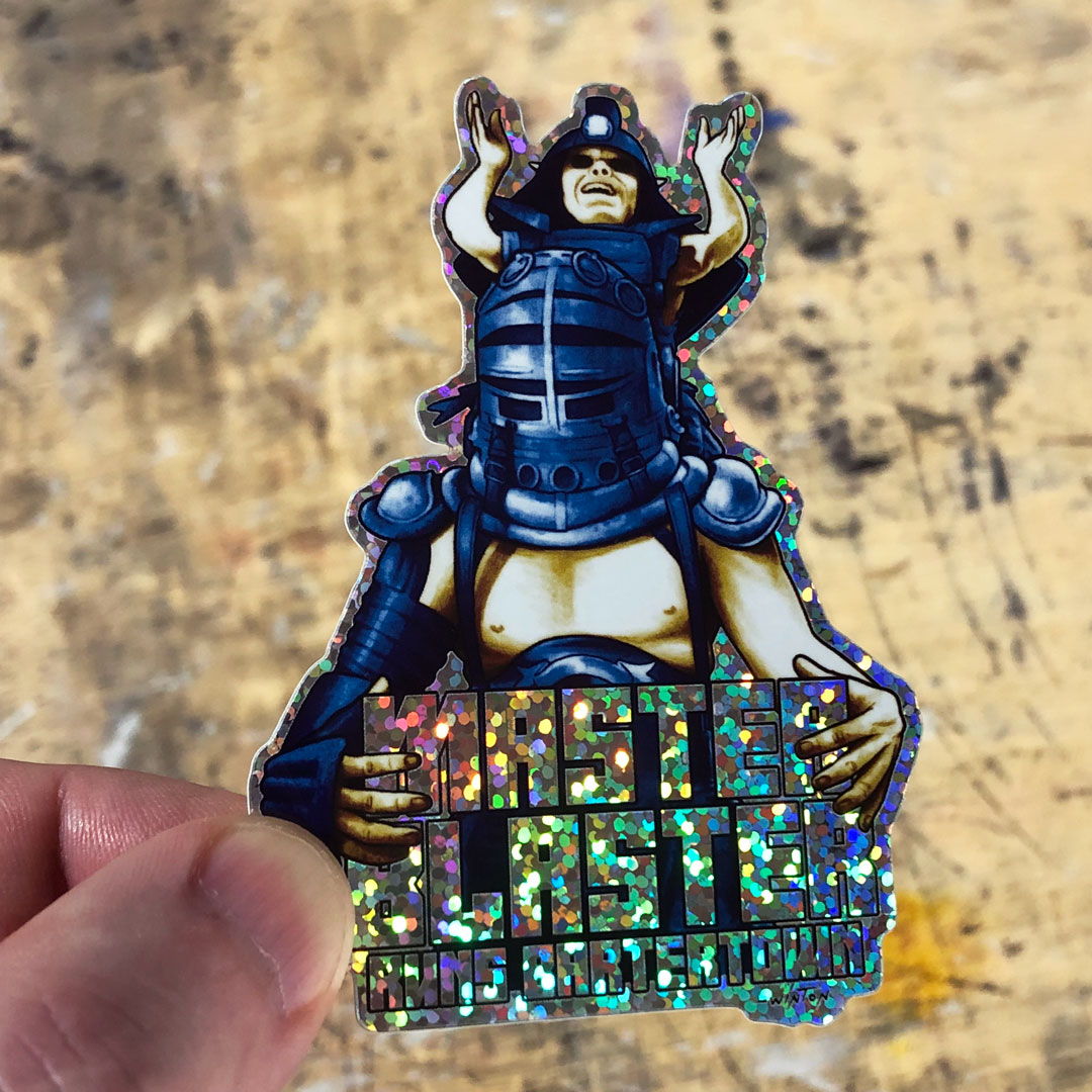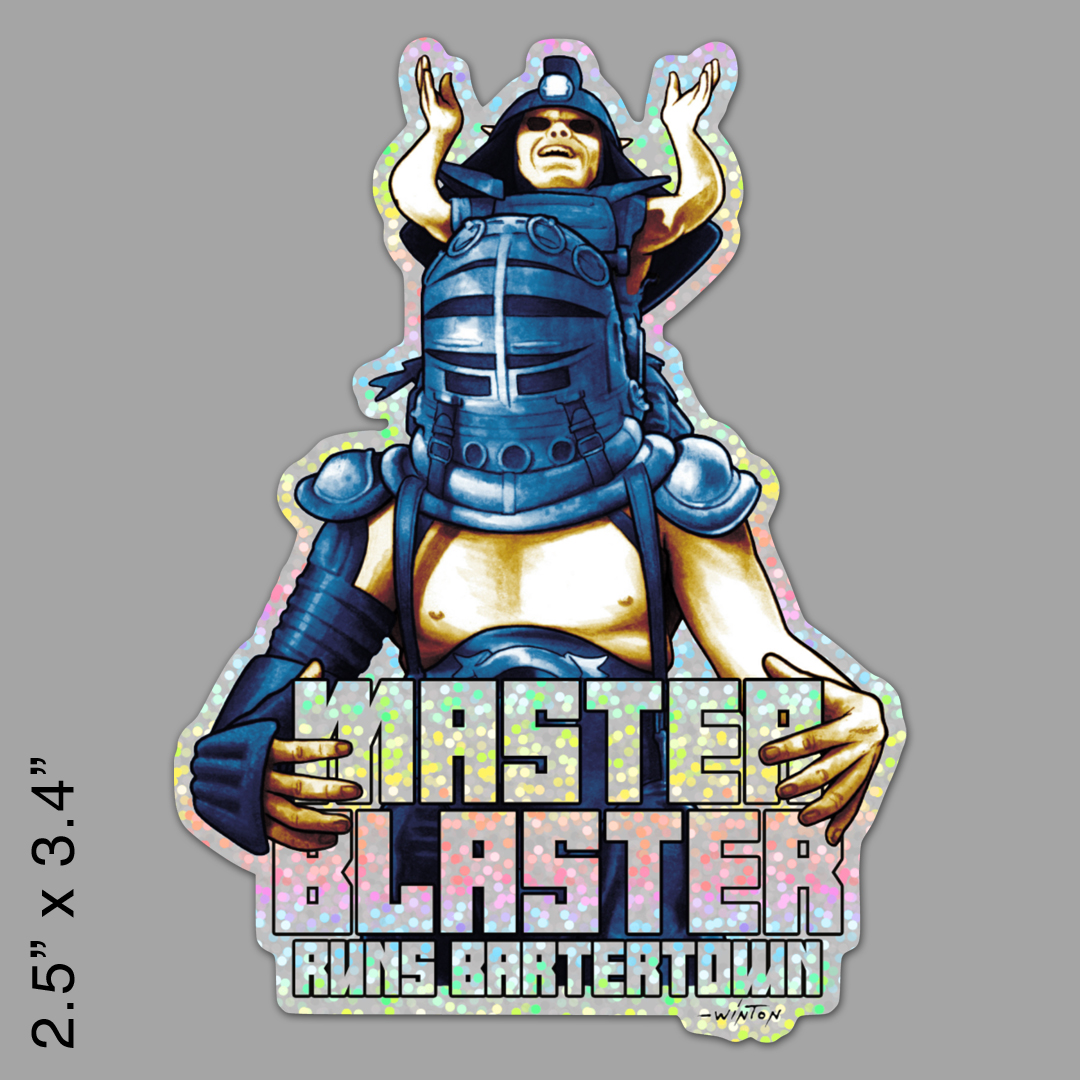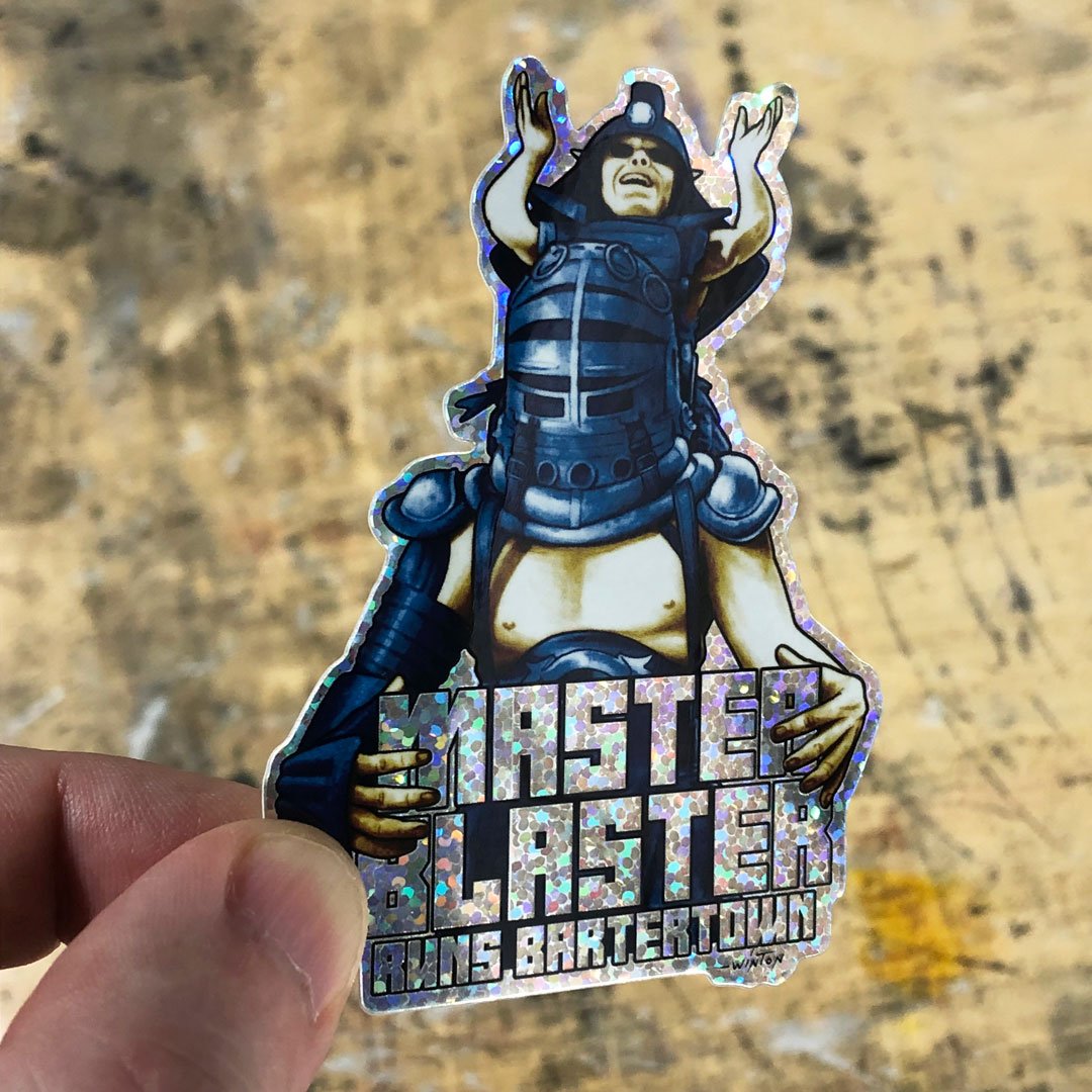 Glitter sticker of Master and Blaster from Mad Max: Beyond Thunderdome, designed by BYRON WINTON.