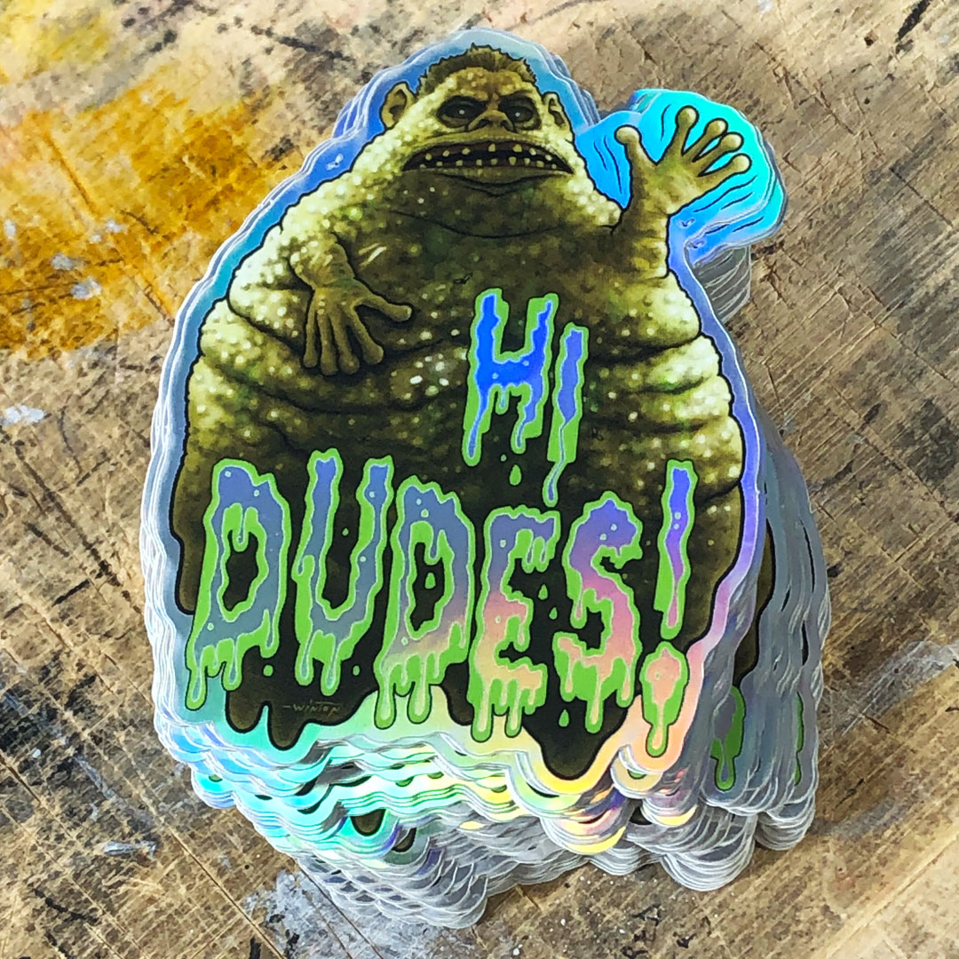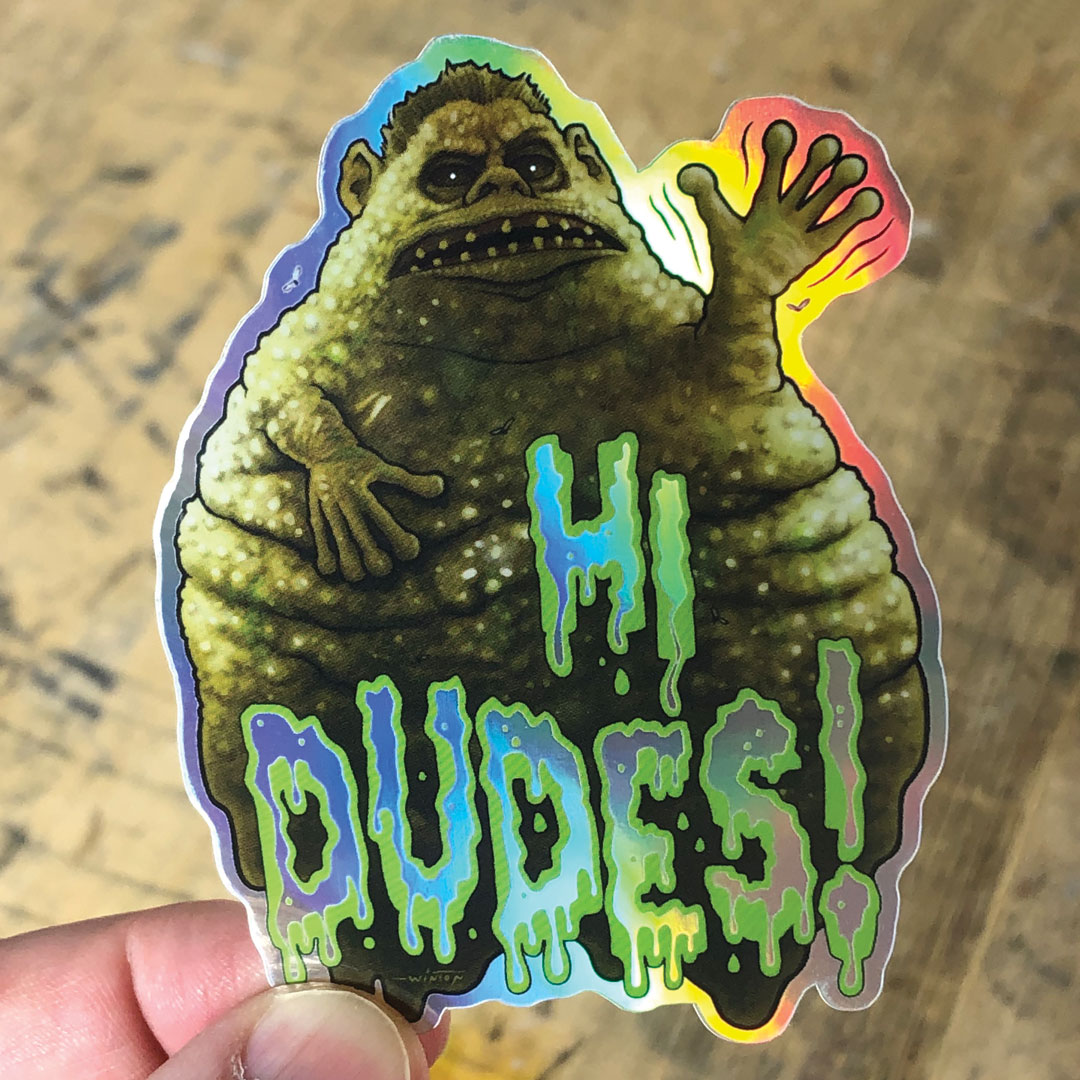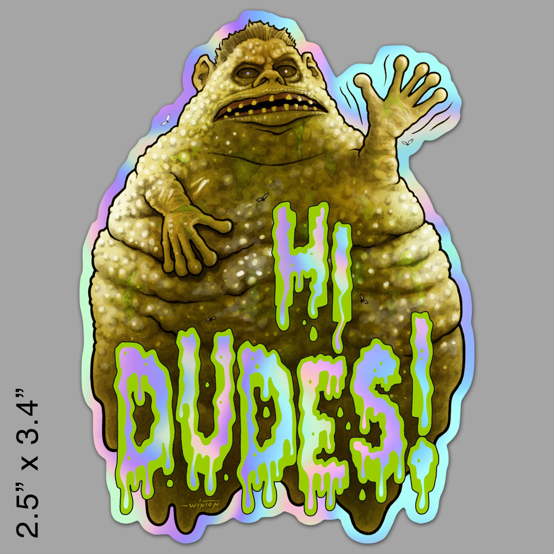Holographic sticker of the stinky pile of poo that once was obnoxious brother Chet from the 80s classic comedy WEIRD SCIENCE, designed by BYRON WINTON.