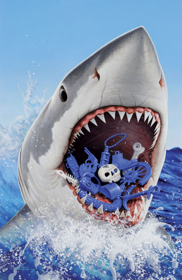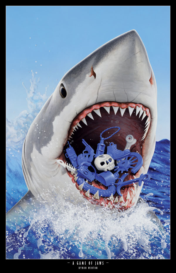 High quality print reproduction of the acrylic painting by BYRON WINTON. Inspired by the classic 1975 horror film, JAWS.