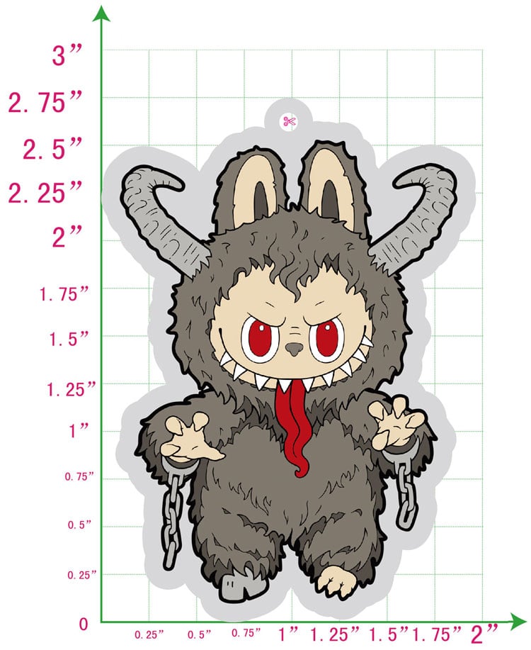 2"x2.75" Clear acrylic with reversed image on the back. Comes with a decorative hook for hanging, a keychain ring, and packaged with a collector backing card. Designed by BYRON WINTON.